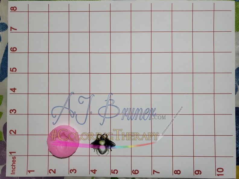 Bookmark and measurements for comparison. (Fully cast bookmark with suspended gears in pink and purple)